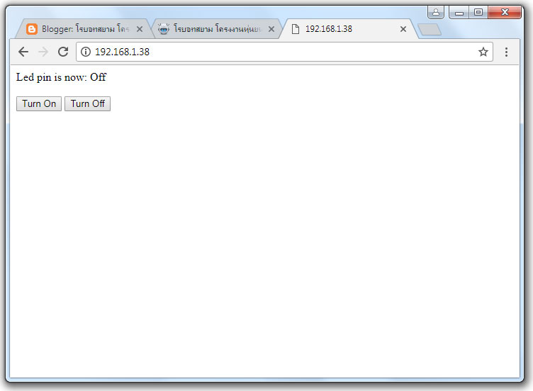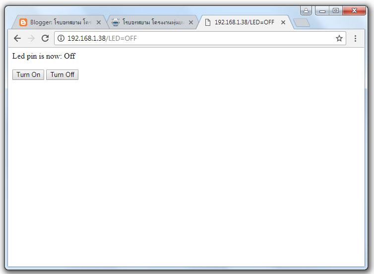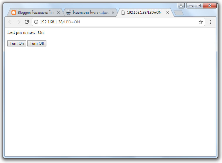 ทดลองคลิกที่ปุ่ม Turn On ไฟ LED จะติด