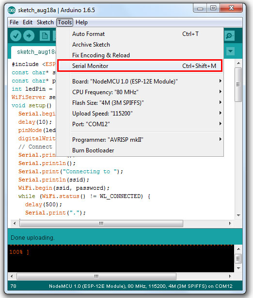 เลือก Board : NodeMCU 1.0 (ESP-12E Module)