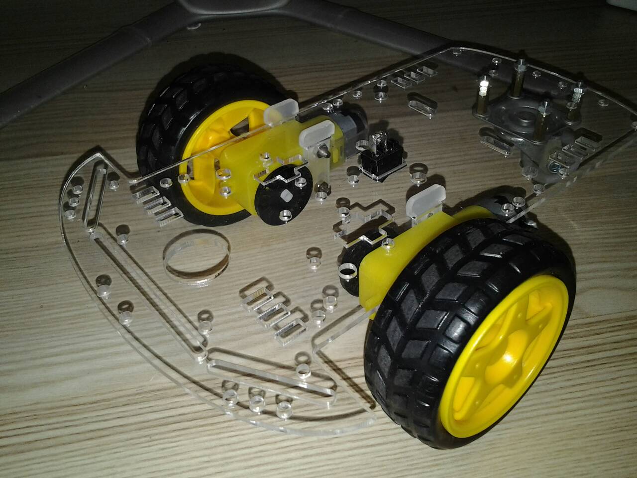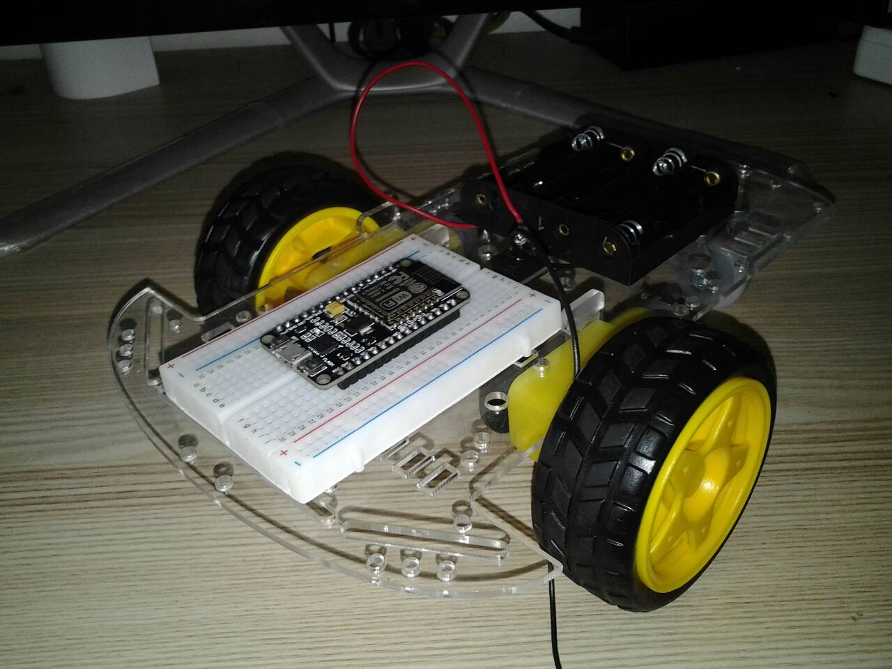 ถ้าทุกอย่างถูกต้อง ทดลอง ยกลงวางที่พื้นแล้ว ทดสอบ ปิดเปิด สวิทช์ไฟ Power ถ้าทุกอย่างถูกต้อง ปรกติ รถจะเคลื่อนที่ไปข้างหน้า-ถอยหลัง แล้ว เลี้ยวซ้าย แล้ว เลี้ยวขวา (ให้ล้อลากสีขาวเป็นท้ายของหุ่นยนต์ , ถ้าต้องการทดสอบใหม่ ให้ ปิดเปิด สวิทช์ไฟใหม่)