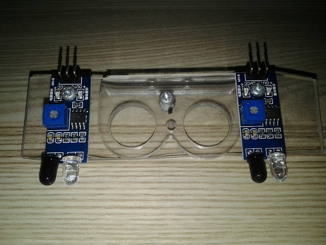 3. ประกอบ เซ็นเซอร์ ทั้ง 2 ตัว เข้ากับหุ่นยนต์
