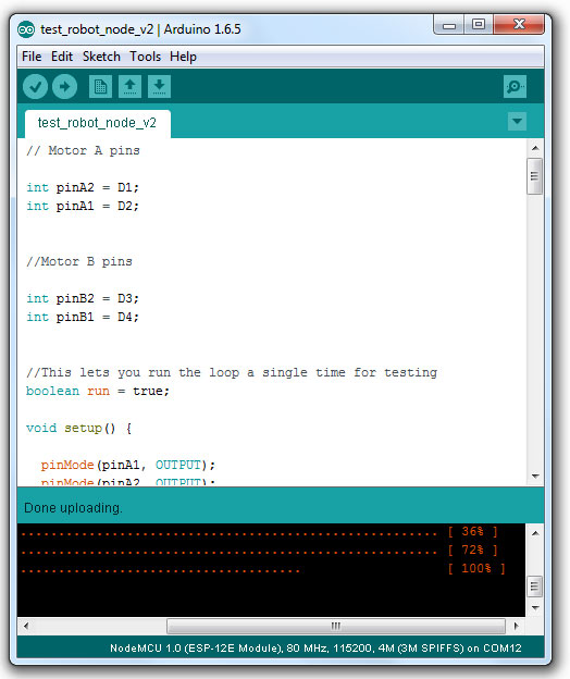 เปิดโปรแกรม Arduino (IDE) และ Upload โค้ดนี้ ไปยัง บอร์ด NodeMCU V2