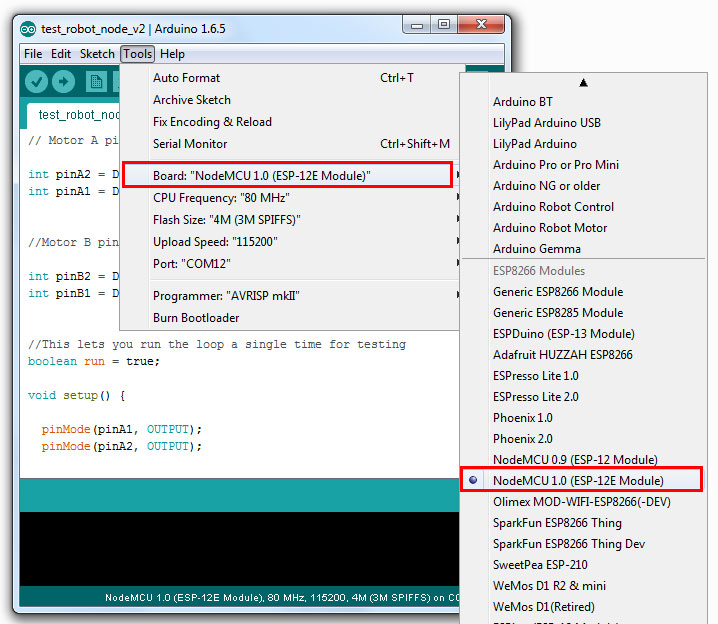 เลือก Board : NodeMCU 1.0 (ESP-12E Module)
