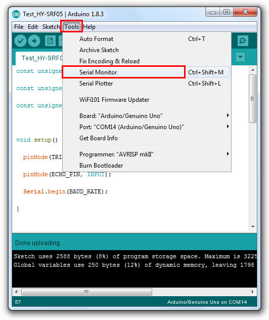เซ็นเซอร์วัดระยะห่างรุ่น HY-SRF05 ใช้คลื่นเสียงในย่านอัลตร้าโซนิคในการทำงาน โดยหลักการคือตัวส่งเมื่อส่งเสียงออกไปแล้วเสียงไปกระทบกับวัตถุแล้วจะทำให้คลื่นนั้นสะท้อนกลับมาแล้วตัวรับทำหน้าที่รับเข้ามา ค่าเวลาที่วัดได้หลังส่งออกไปแล้วรับกลับมาจะถูกนำไปคำนวณโดยเทียบกับความเร็วเสียงทำให้ได้ระยะทางออกมา