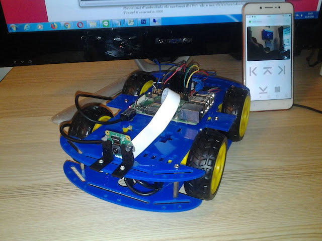 โปรเจคหุ่นยนต์ติดกล้อง Raspberry Pi ควบคุมด้วย เว็บเพจ โดยในโปรเจคนี้เราจะสร้างเว็บเซิร์ฟเวอร์ จาก Raspberry Pi โดยจะติดตั้งกล้อง Camera V2 Module เพื่อถ่ายภาพที่ด้านหน้าของหุ่นยนต์ และ สั่งควบคุมหุ่นยนต์ จาก เว็บบราวเซอร์ ผ่านทาง ระบบอินทราเน็ต ที่ใช้ WiFi หรือ วง แลน หรือใช้ เร้าเตอร์ เดียวกัน เท่านั้น
