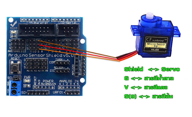 เมื่อสเกลค่า จาก 0-1023 ลงเหลือ 0-180 แล้วก็นำมาสั่งให้ Servo Motor หมุนไปยังตำแหน่งในค่าตัวแปร val delay(15);
