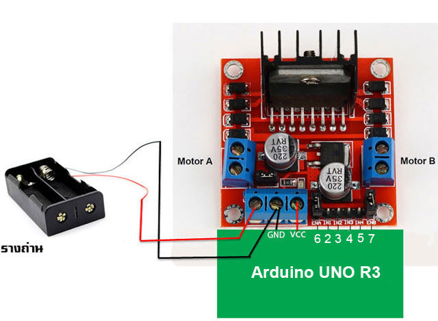 เรียนรู้เพิ่มเติมตามลิงค์นี้ http://robotsiam.blogspot.com/2016/08/l298n-motor-driver-connect-arduino-r3.html