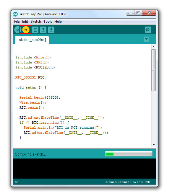 *** การใช้งานแบบไม่ต้องการเชื่อมต่อสาย USB กับ คอมพิวเตอร์ ให้ใช้ Adapter DC 9V 1A Power Supply เป็นแหล่งจ่ายไฟ เสียบเข้ากับ DC Power Jack ของ บอร์ด Arduino *** ขั้นตอนการทำโปรเจค 1. ตั้งค่า วันที่ และ เวลา ให้กับ DS3231 1.1 ยึดบอร์ด Arduino UNO