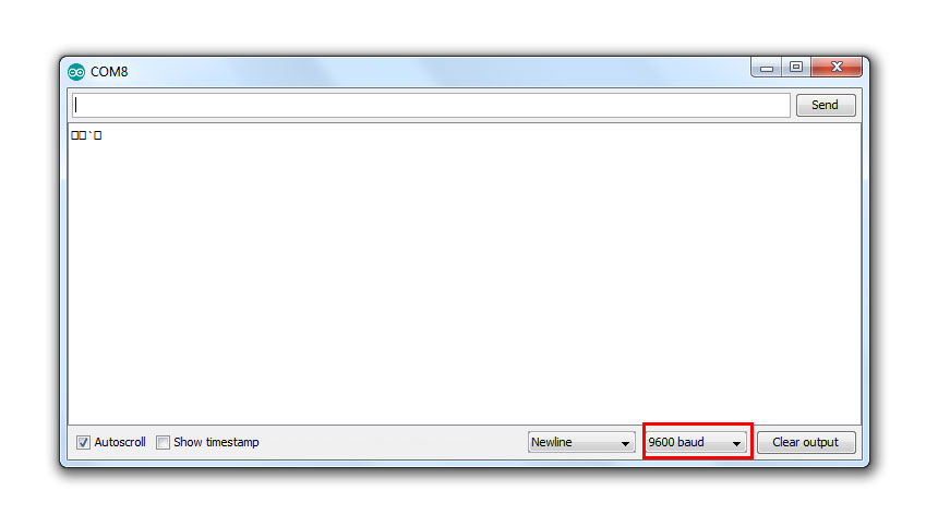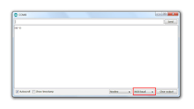2.11 มุมขวาล่าง ของ Serial Monitor เลือกเป็น 57600 baud คือ ตั้งค่าความเร็วในการรับ-ส่งข้อมูล คือ 57600 ตามที่เราเขียนโค้ดไว้