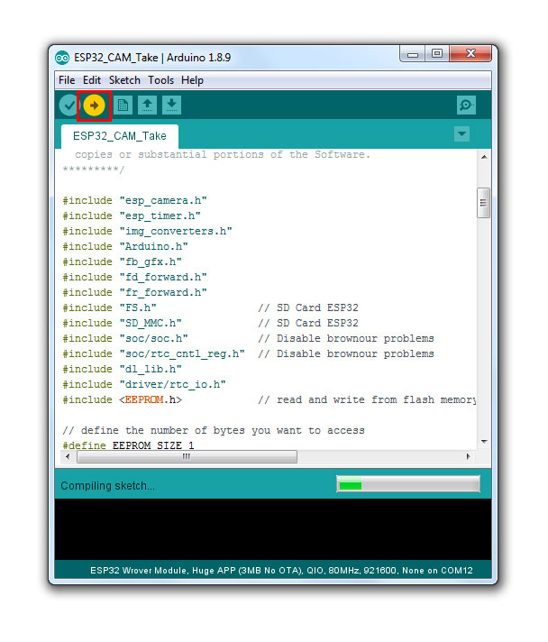เปิดโปรแกรม Arduino (IDE) อัพโหลดโค้ดด้านล่างนี้ ไปยัง ESP32-CAM